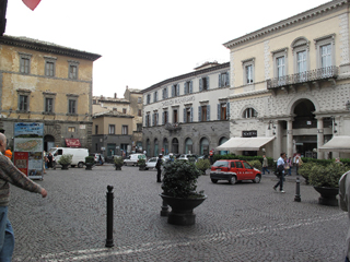 Two major piazzas are full of parked cars on weekdays in Orvieto, and workers are very proprietary about their spots. The garage under the hillside appears to be less than half filled during the daytime. Lack of signage from the nearest auto route seems to be at least partially responsible.