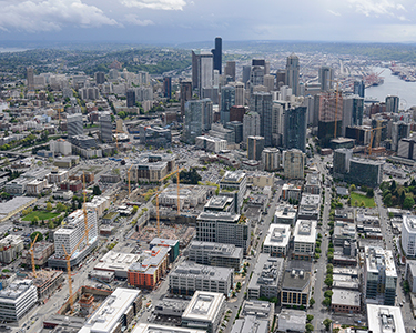 In February, Rider Levett Bucknall's Crane Index counted over 50 construction cranes in downtown Seattle.