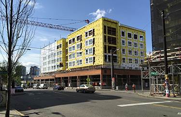 The facade-ectomy is becoming a predictable strategy in South Lake Union and Pike/Pine: salvaging part of a historic or “character” building in an upzoned area that's ripe for redevelopment. The old structure is surgically removed, leaving an outer brick wall or two to remember it by. The preserved facades then become part of the skin of the new building — a welcome but shallow reminder of the original, with nothing of the old shell inside. Look for a bread loaf right behind the facade.