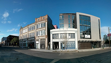 Chophouse Row, designed by Sundberg Kennedy Ly-Au Young Architects and Graham Baba Architects, is a seven-story mixed-use building with a new structural system bolted onto an old automotive base structure.