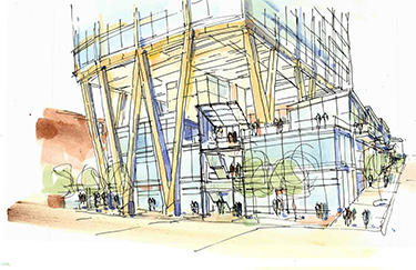 As the design evolves, we can count on seeing roofs ramps and walkways intermix in interesting ways. There will be a central plaza, maybe with moveable furnishings.