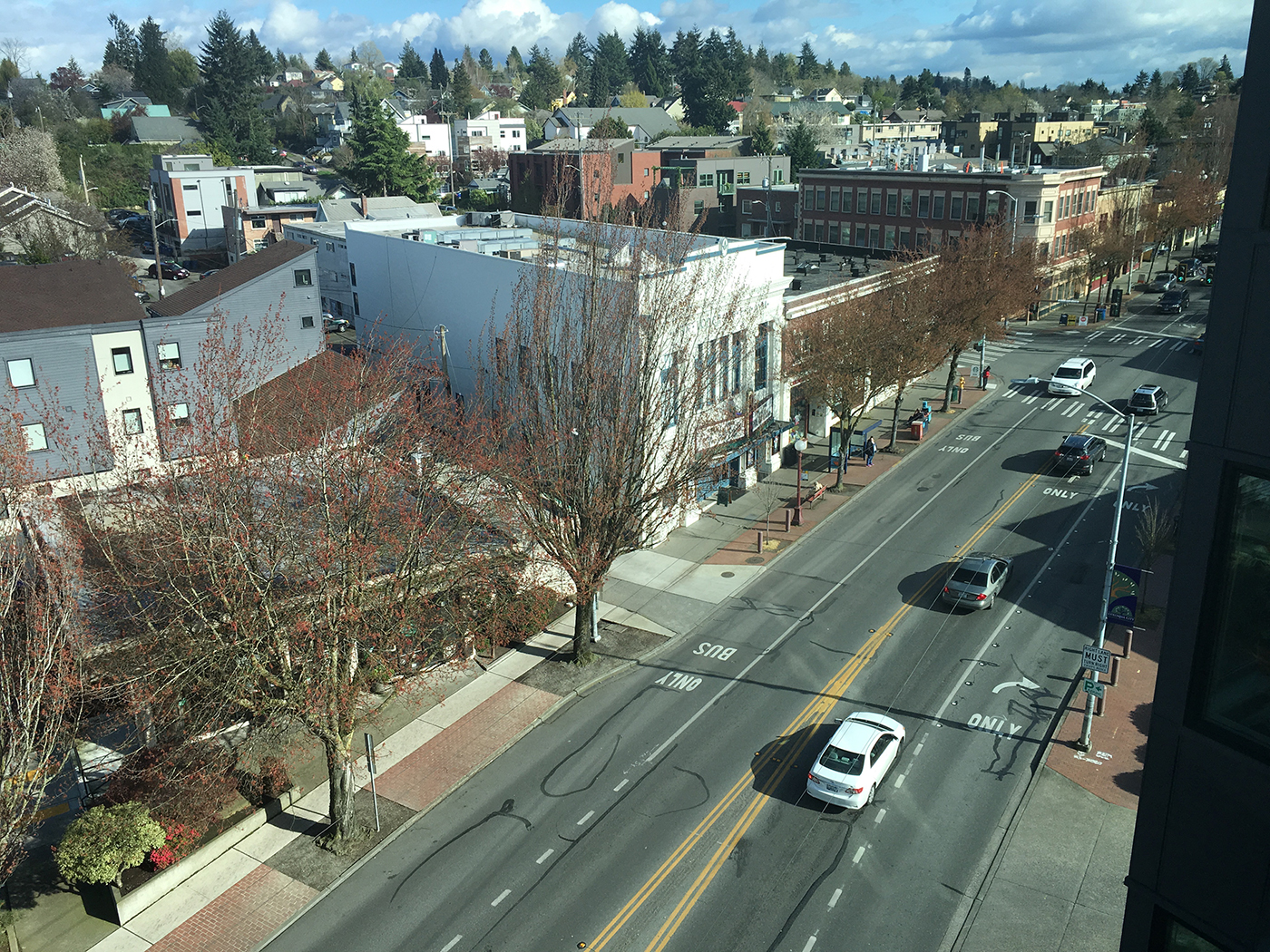 In some blocks, the right lane is transit only, and stoplights allow buses to pull ahead of the queue at the intersection of Rainier and Edmunds. The net result is faster transit times.