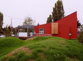 Environmental Works Community Design Center Dave Sarti, project designer Jan Gleason. principal in charge Owner Seattle School District Project type Child care center Size 2,490 square feet Completion August 2003 Construction cost $329,000 Structural engineer Swenson Say Faget Electrical engineer AES Inc. Mechanical engineer Sider & Byers Associates Landscape, civil engineer Bob Foley & Associates General contractor Steelecorp “There is a simple sense of love in the inexpensive details of what has obviously become a comfortable space for children.” “This project demonstrates how the neutral fabric of a prefabricated house can be enhanced by small, low-cost additions and innovative finishes. The result is dynamic and exciting.” “By limiting the pallet of materials used in additions to the exterior, a playful sense of assembly is communicated.” “This project demonstrates the transformative power of design ideas on a temporary classroom building.” |