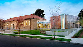 The Douglass-Truth library addition leaves the historic dignity of the library intact. Copper cladding will turn blue-green over time.