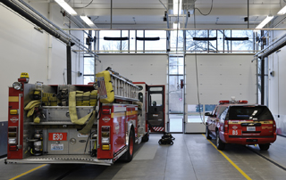 The apparatus bay is heated with high efficiency gas unit heaters that can rapidly accommodate major changes in temperature when the large doors are opened in the winter. There's fresh air throughout.