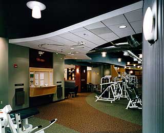 The fitness center features state-of-the-art cardiovascular equipment with built-in Internet and television capabilities, allowing members to check e-mail, shop online or watch their favorite show while working out. It also has separate areas for a complete circuit of strength training equipment and free weights. Children of members are supervised in a staffed child care area.