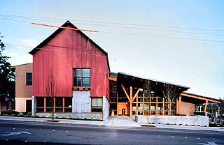 The 24,000-square-foot building has one of the region's first installations of certified wood. Non- or low-toxic finishes are used throughout and a number of recycled-content materials are included such as insulation, drywall, acoustical tile and partitions. The exterior is painted fiber cement siding. Skylights and an open office plan make the most of natural light and ventilation.