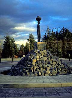 The park's first phase also includes a large plaza that was designed by MacLeod Reckord Landscape Architects of Seattle, the project's primary design consultant. The plaza features a long reflecting pool with bronze and granite elements, teak benches and stone walls.