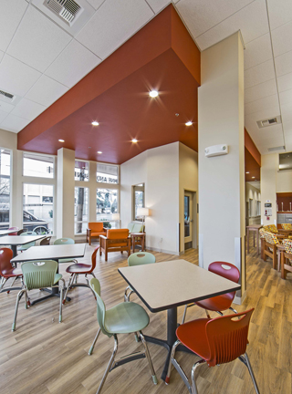 Along with studio and one-bedroom apartments, the building has an exercise room, library with computers, community patio and garden space.