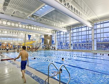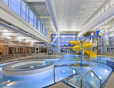 The center includes a gym, multipurpose room, kitchen, computer lab, arts and crafts room, a recreational pool with waterslide and wading pool, and a lap pool.