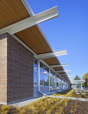 Heat-recovery dehumidification units were used along with radiant slab heating, ground-source heating and cooling, and evacuated tube solar water heating. Activity and gymnasium spaces are cooled through natural ventilation.