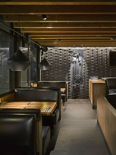 The 7,000-square-foot interior build-out of the restaurant includes detailed masonry, wood and decorative structural steel elements.