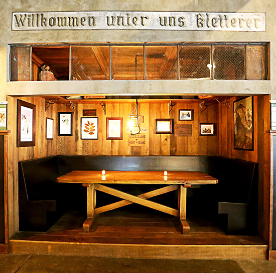 The establishment serves draft and bottled beer, and cocktails. The menu is classic beer hall fare with a Northwest influence, such as soft Bavarian pretzels, wiener schnitzel and a variety of grilled sausages with sauerkraut.