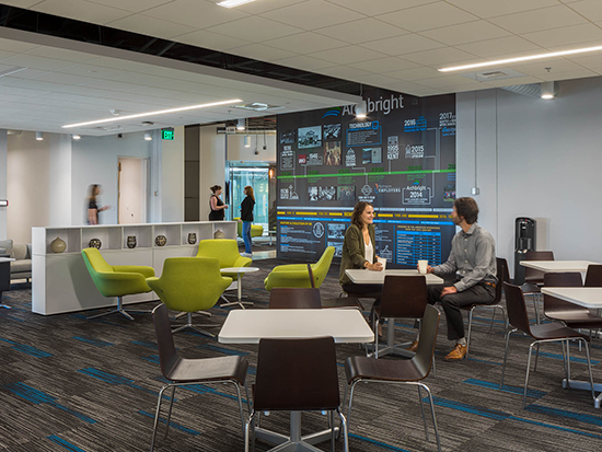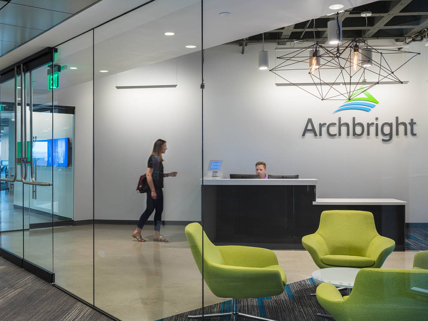 Brand integration was key in the design, and Archbright’s blue and green color palette is reflected in materials used throughout.