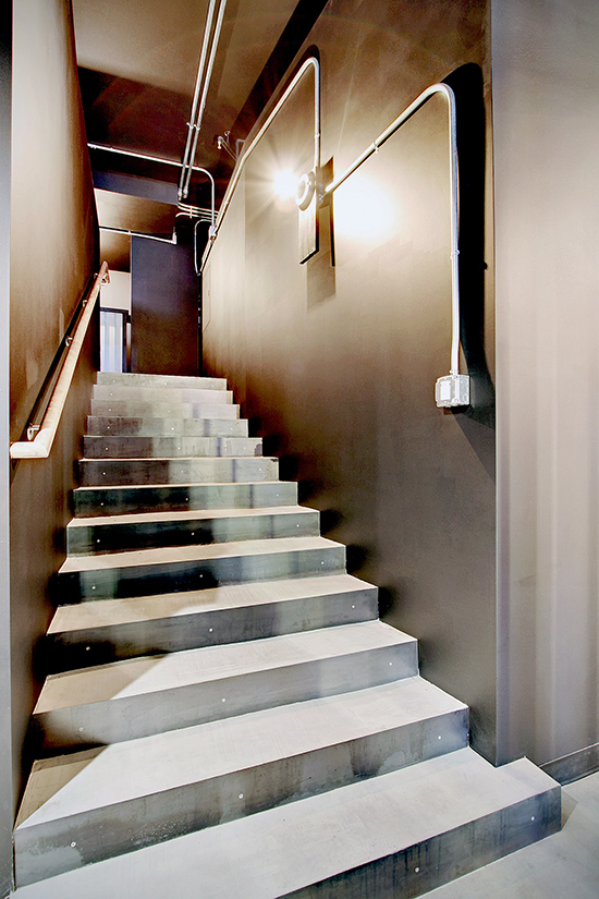 Concrete and steel stairs were added to lead up to a new 400-square-foot mezzanine, which created room for office space, laundry and a breakroom. The total square footage is now 2,300 square feet.