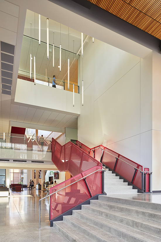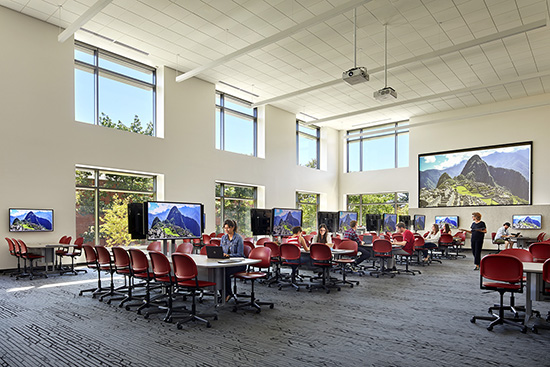 The $43.4 million project was designed to encourage active learning and prepare students for the information-based economy. It features a variety of classroom types and movable furniture that appeal to different learning styles.