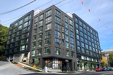 The new eight-story Stellar apartments at 1405 Dexter Ave. N. replaced an old industrial building in Seattle’s South Lake Union neighborhood.