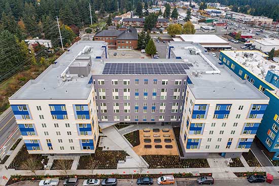 The Aries is a new 206,000-square-foot transit-oriented apartment community at 916 N. 143rd St. in Seattle’s Bitter Lake neighborhood.