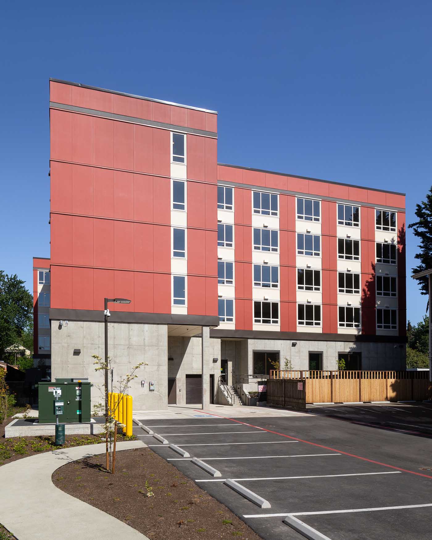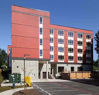 Sacred Medicine House is a five-story, 120-unit supportive living apartment complex in Lake City at 14315 Lake City Way N.E.