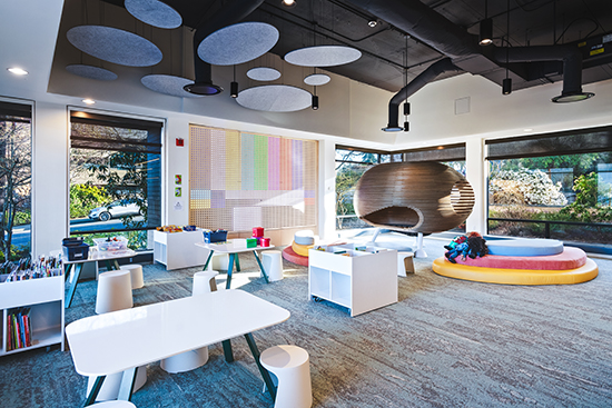 Other unique elements in the children’s area include a sculptural enclosed seating space called The Pebble and a cuddle nook. There are also spaces for co-operative play and learning.