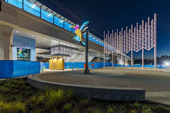 Stations also feature diverse artwork, including a piece called City Hummingbird by artist Claudia Fitch at Lynnwood City Center Station.