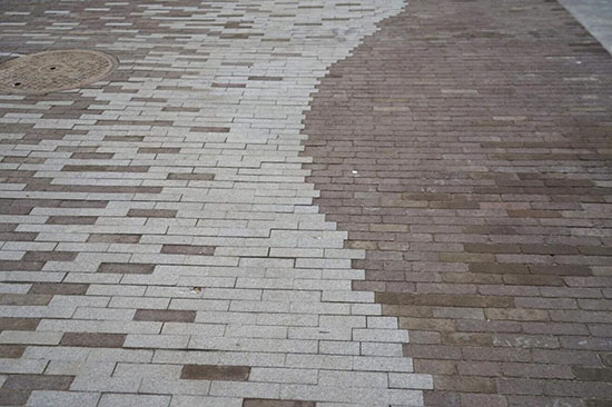 Storytelling elements encourage visitors to reflect on the city’s history, such as light and dark brick pavement markings that identify the original location of the historic Elliott Bay shoreline from the mid-to-late 19th century.