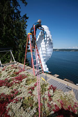 This Helix Wind turbine powers a 2.5-kilowatt generator at the Zero Energy House in Bellevue.