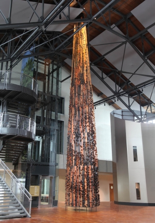 His new sculpture “Wawona” stretches 56 feet from top to bottom in the museum's grand atrium, attracting curious museumgoers with its looming presence. It looks at first like a wayward tree punching up through the building, but its size belies a weightlessness that becomes more evident up close.