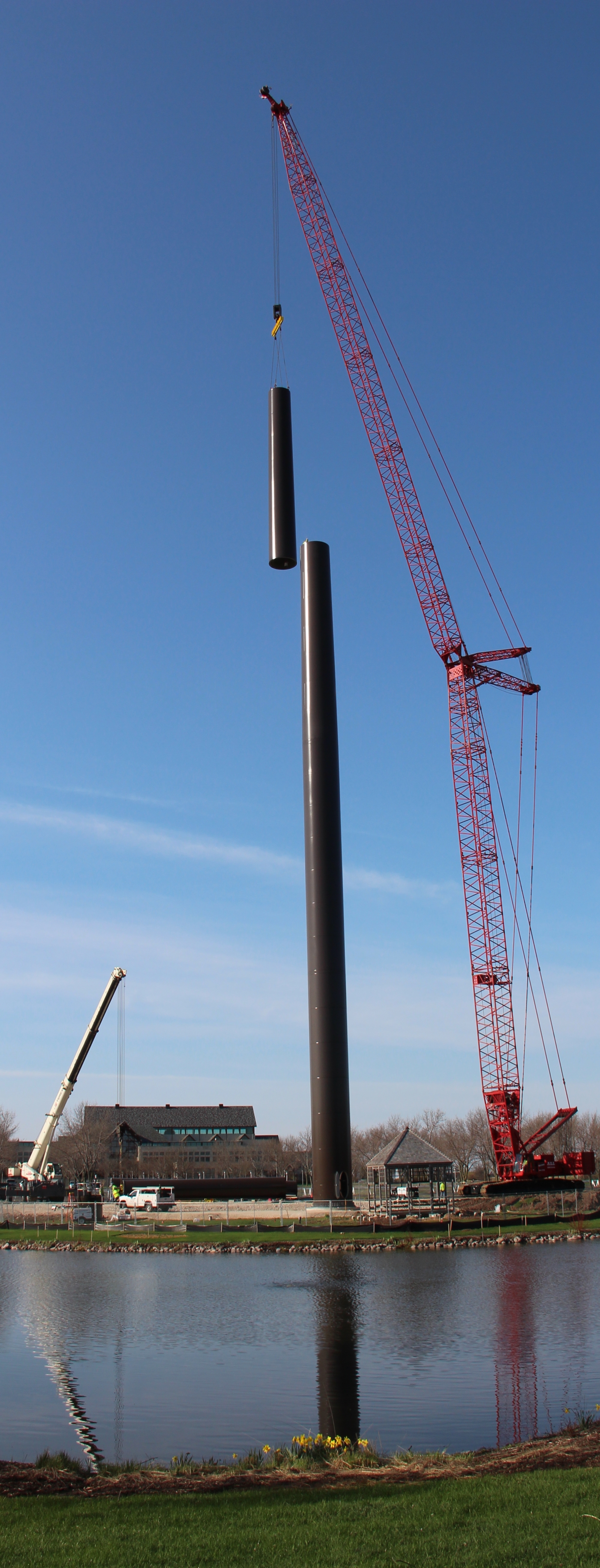 To lessen the effect of wind on the pole, three steel pendulums were hung from bars inside the pole. Blomgren said the force created by the pendulums will cancel out the force created by wind, causing the pole to swing in the opposite direction of the wind hitting it, which means less stress on the steel. “You want them to be perfectly out of phase with each other,” he said.