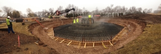 A massive concrete base was poured to support the pole and its 500-pound flag.