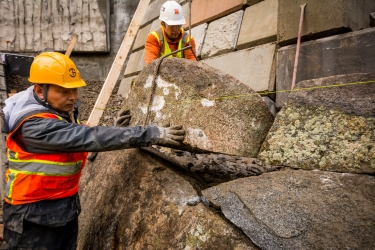Awata called upon a team of experts that included Matt Driscoll of O'Driscoll Stone in Petaluma, California; Kyle Schlagenhauf of Green Man Builders in Arcata, California; and Ed Lockett of Stone Sculptures in Vancouver.