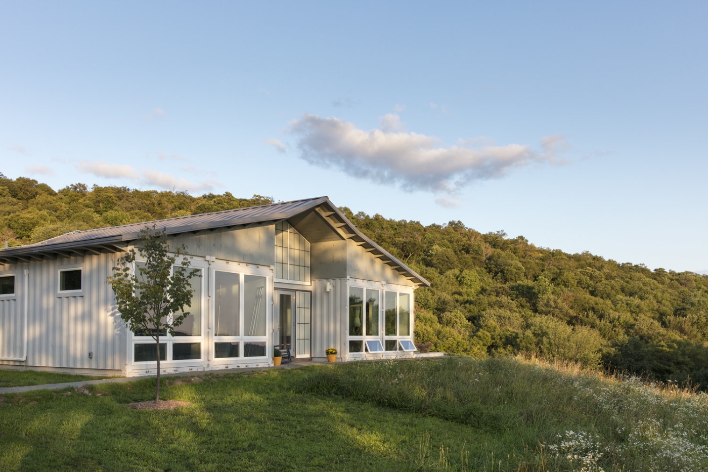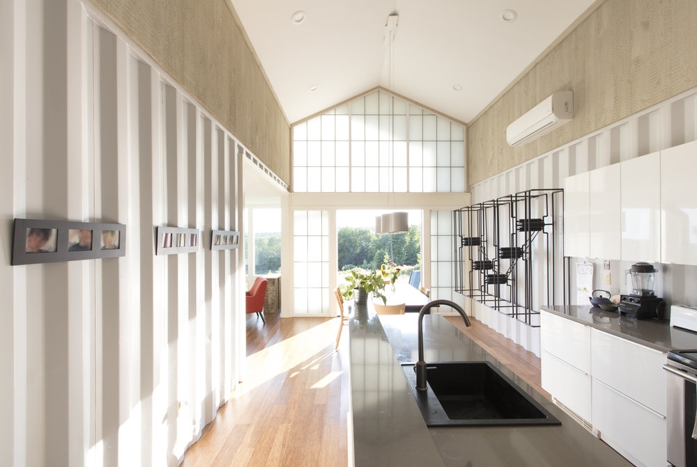 Steele House used four cargo containers to build this two-bedroom, two-bath home in Callicoon Center, New York.