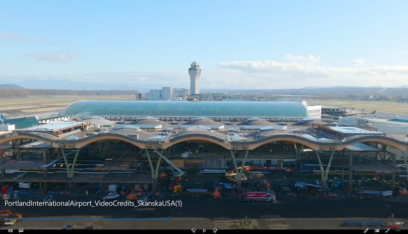 Skanska put together a drone video of construction at Portland International Airport that transitions into a rendering of the new terminal.