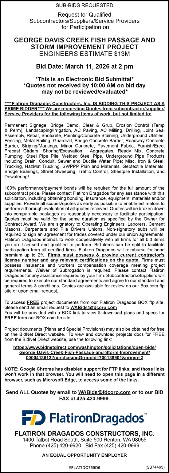 | GEORGE DAVIS CREEK FISH PASSAGE AND STORM IMPROVEMENT PROJECT Flatiron Dragados Constructors Inc. |
