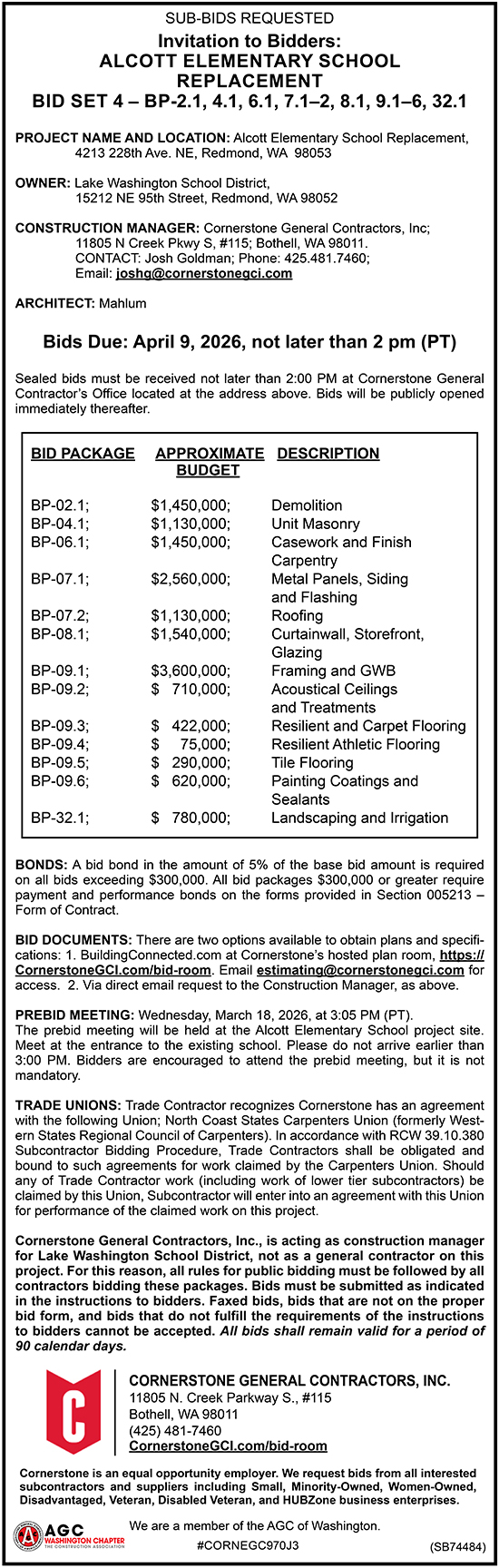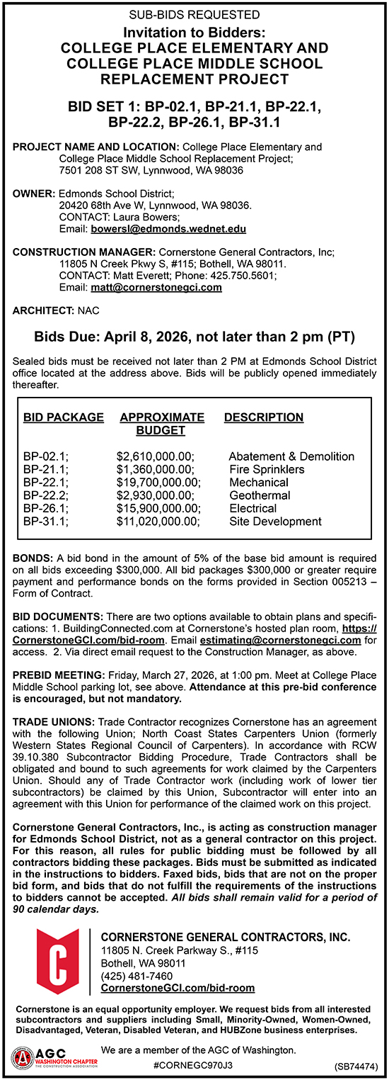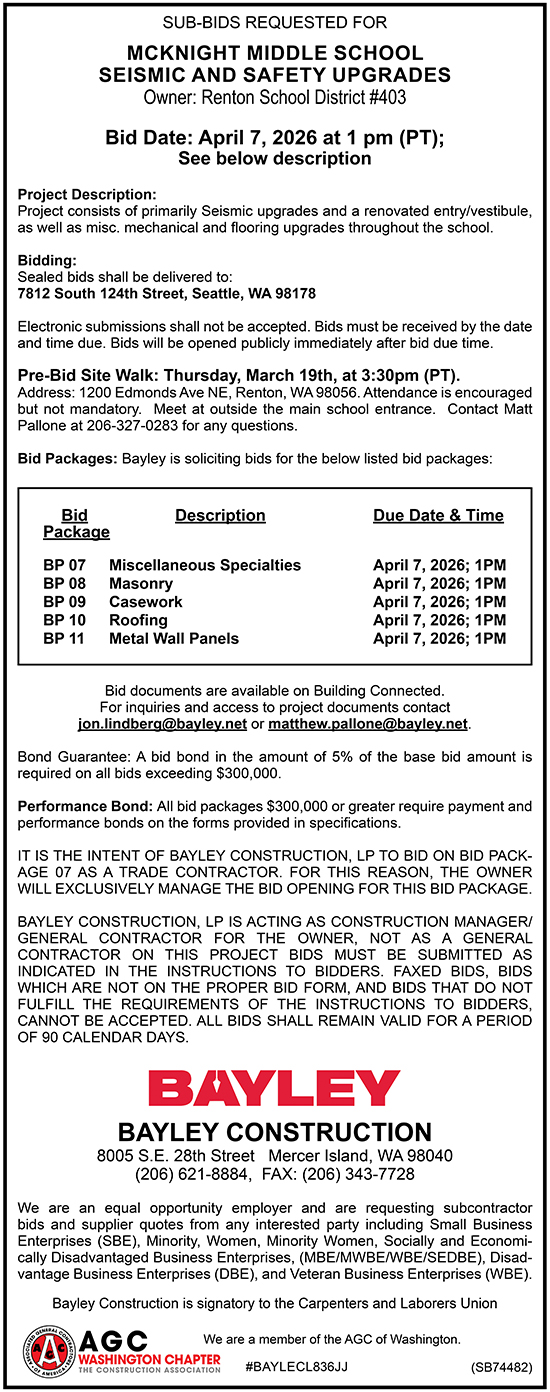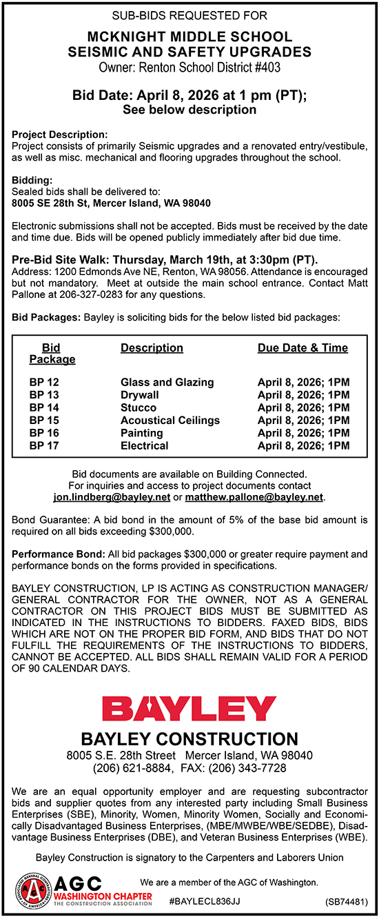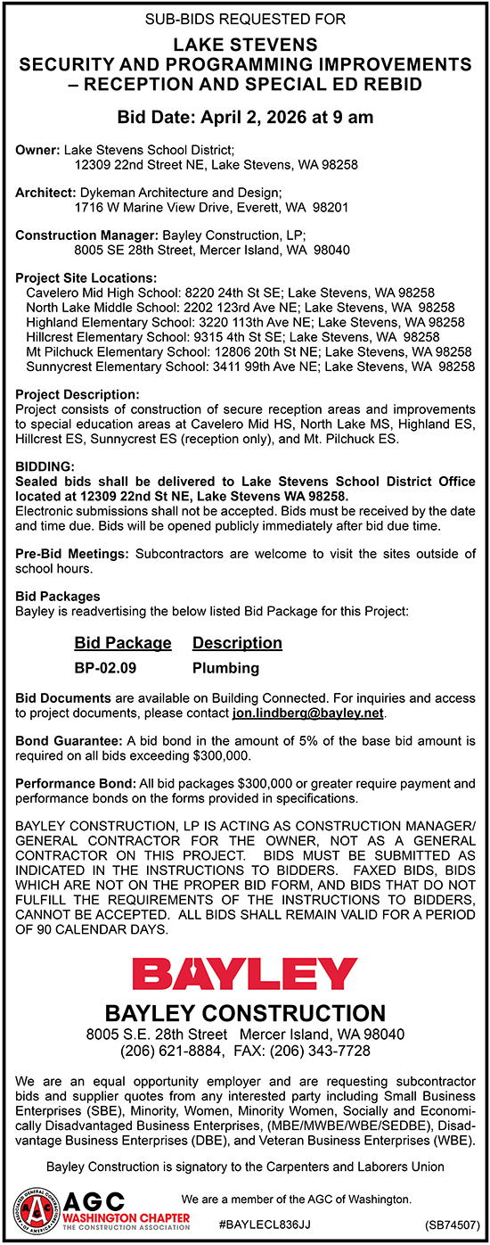 | LAKE STEVENS SECURITY AND PROGRAMMING IMPROVEMENTS – RECEPTION AND SPECIAL ED REBID Bayley Construction |