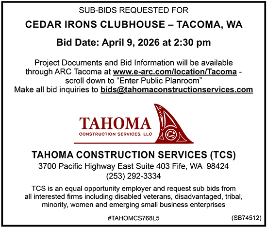| CEDAR IRONS CLUBHOUSE – TACOMA, WA Tahoma Construction Services (TCS) |