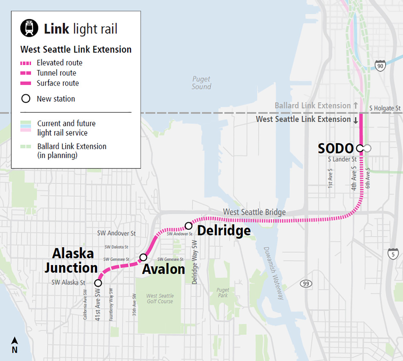 The preferred alternative, before any changes, includes 4.1 miles of light-rail track, a new bridge over the Duwamish River, a tunnel and four new stations, connecting SoDo with Alaska Junction.