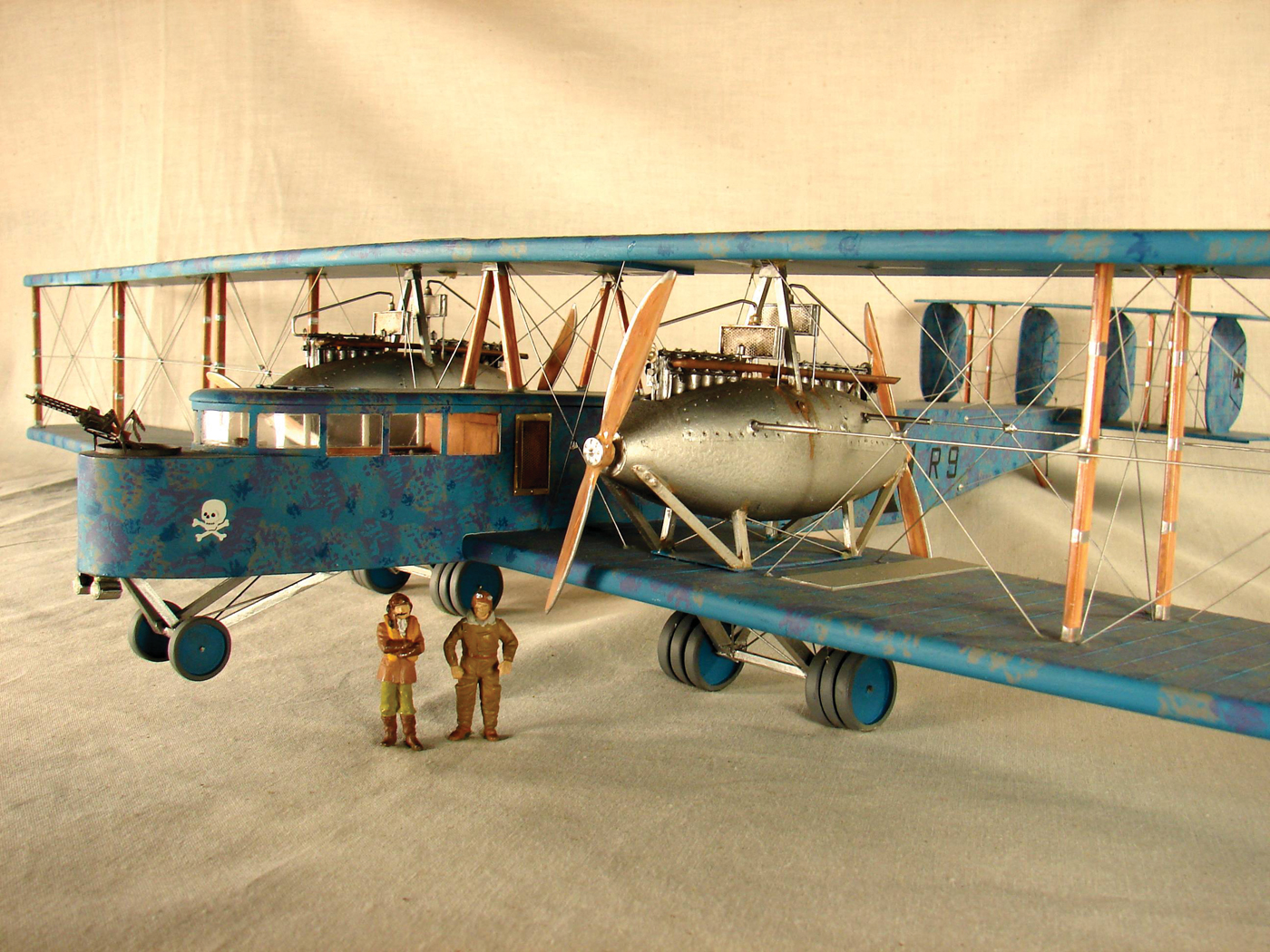 This model is a Zeppelin-Staaken R, a German bomber used in World War I. It is one of 153 hand-crafted scale models of early warplanes now on display.