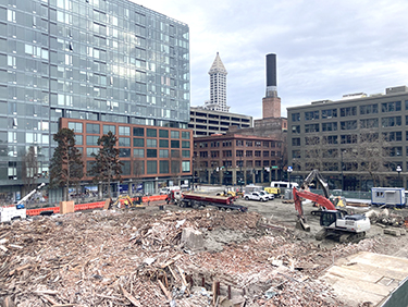 Urban Renaissance Group is in charge of the demolition, working with BNBuilders; architect Perkins&Will; Dickson Demolition and Abatement of Tacoma; and Coughlin Porter Lundeen, the civil engineer.