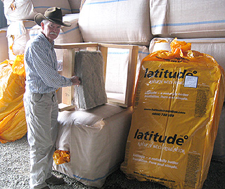 Latitude is shipping the batts from New Zealand for now, but Pynch says as business picks up, he will use his wool as well.