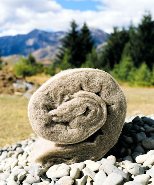 To make the insulation, cleaned and scoured wool is bonded with a nontoxic acrylic resin using a spray process for which Latitude holds a patent. The batt insulation holds its shape and is designed to friction-fit between framing or lay like a stiff blanket. Because it holds in place without glue or staples, areas can be insulated far faster than with typical fiberglass insulation, Pynch said. Latitude expands to fit walls, but when insulating floors it needs to be strapped, netted or stapled in.