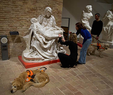 ROME (AP) — On a recent weeknight, long after the swarms of tourists had left Rome's Colosseum, a small group of people walked around outside the darkened amphitheater, pausing every so often to take in a new aspect of its history, art or architecture with every sense but sight.