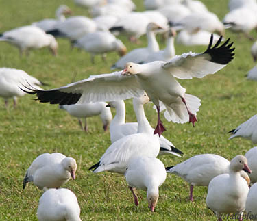 EVERETT — Fields in the Skagit Valley are white with birds again this winter as thousands of trumpeter and tundra swans, and snow geese migrate from Alaska and Canada to rest and feed in the Puget Sound area.