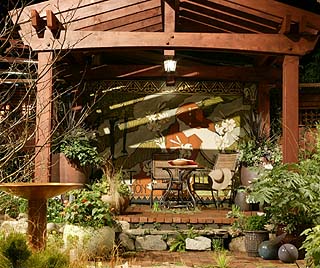 This award-winning garden is on display at the at the Northwest Flower and Garden Show. "An Arts & Crafts Garden Revival" was designed by Jacqueline Esselstrom for three Sumner companies: Windmills Gardens, Dayspring Waterscaping and Cascadia Garden Design.