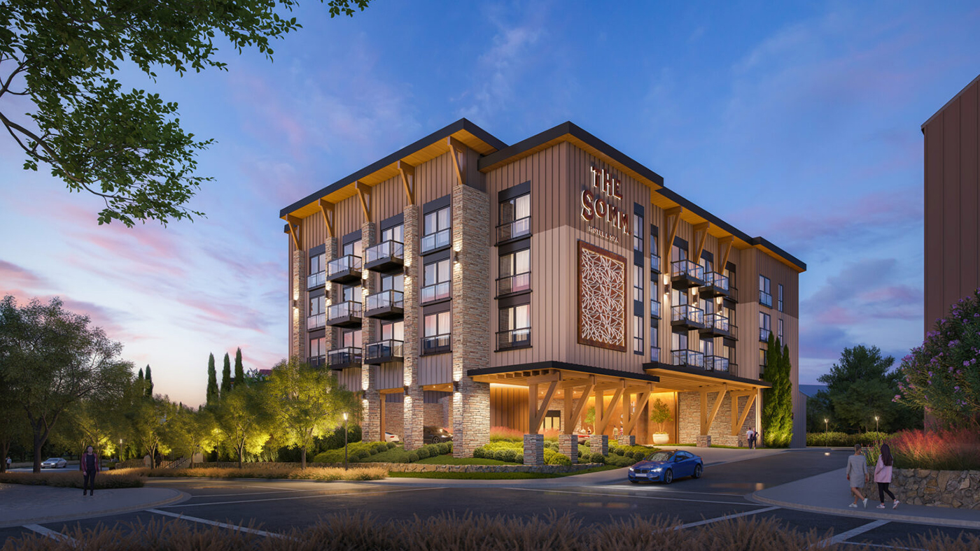 There are now three cranes over Harvest, the wine-themed, mixed-use project in Woodinville. It's proceeding in phases, with Wood Mountain as the lead developer and Columbia Pacific Advisors as the main financial backer. Now joining the hotel financing effort is Hall Structured Finance of Dallas. It recently announced its provision of $52 million for the 164-room Somm Hotel and Spa, which is now under construction. (The separate shops, apartments, condos and townhouses all have various overlapping parents.) Brian Holstein of US Hotel Advisors brokered the deal. Hall's Brian Mitchell said in a statement, “The hotel is ideally located for business travelers, business groups and conferences, while also offering high-end dining, retail and wine-tasting experiences for the leisure traveler.” The Somm team is lead by Woodinville Hotel Partners, whose Kent Halvorson added, “We are grateful for the innovative financial solution.” Alco Investment Co. is an equity partner in the hotel, later to be managed by Marriott. Jensen Design Architecture is the designer, and Sierra Construction the builder.
