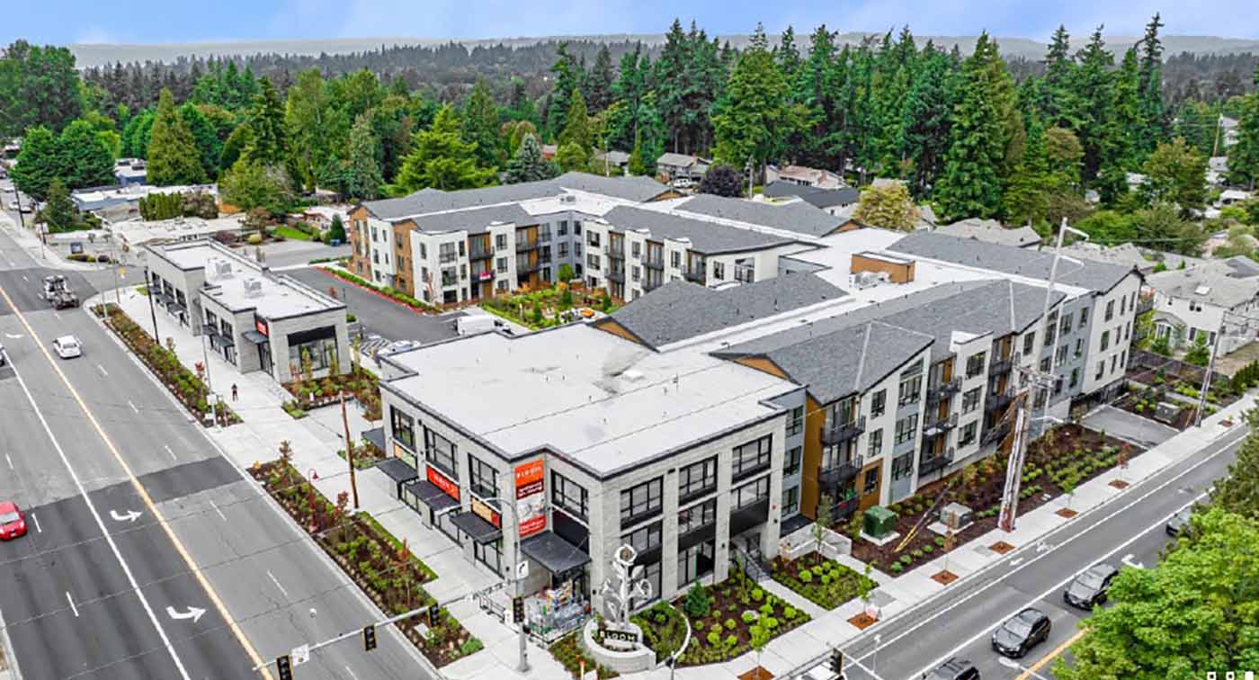 The fairly new 135-unit Bloom, in Kirkland's Rose Hill neighborhood, was developed by Merit Homes. The two-building low-rise complex opened in late 2022. Now that it's up and running, Walker & Dunlop has arranged a $39 million refinancing package, with the money provided by an arm of Bridge Investment Group. (Both firms are based in New York.) W&D's Mark Plenge and Grant Robertson secured the financing, which the firm calls a “maximum-progress, full-term, interest-only, non-recourse debt loan with a flexible prepayment structure.” The new money retired the prior construction loan from Bank of the West. Bloom was designed by Encore Architects, with Pelletier + Schaar as the architect of record. Merit acted as its own builder.