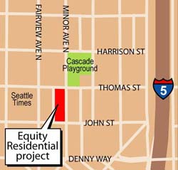 Equity Residential asked the city of Seattle for early design guidance on a 275-unit apartment project on Minor Avenue North in South Lake Union near Amazon.com's headquarters.