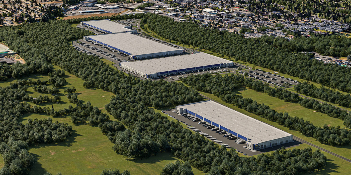 South of downtown Tacoma, in what some call the Nalley Valley, Bridge Industrial acquired a large development site from BNSF in the fall of 2021. Planning soon began for Bridge Point Tacoma 2MM, at 4802 S. Burlington Way, with Synthesis as the architect, Sierra as the builder and Kidder Mathews as the broker.