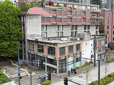 The saga of the waterfront's Bakun Building, at 1426 Alaskan Way, goes back a century. It survived the construction and demolition of the viaduct, and has endured several earthquakes. And, despite a foundation of wooden pilings driven into soggy mud and fill, the empty former Frye meat-packing plant is still standing.