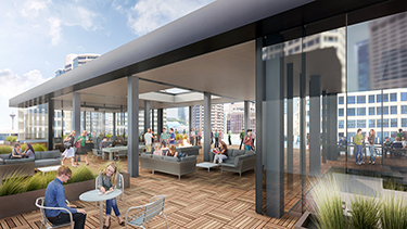 300 Pine’s rooftop will have an indoor/outdoor lounge where tenants can hang out, entertain, meet and eat lunch.
